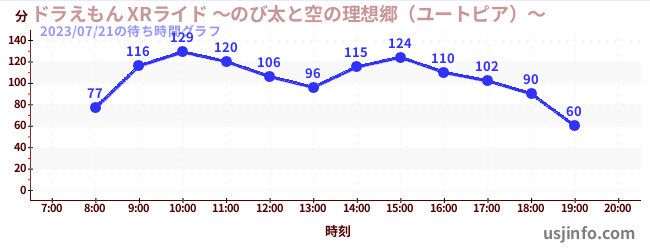 • ドラえもん XRライド ~のび太と空の理想郷(ユートピア)~$B$N(B2023年07月21日の待ち時間