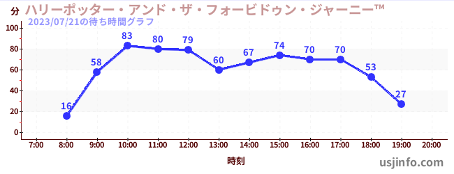 • ハリーポッター・アンド・ザ・フォービドゥン・ジャーニー™$B$N(B2023年07月21日の待ち時間