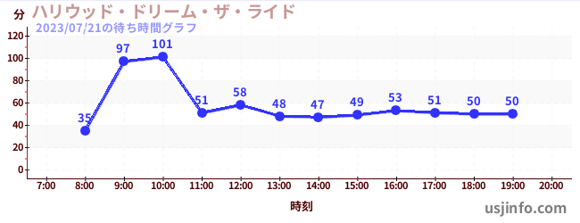 • ハリウッド・ドリーム・ザ・ライド$B$N(B2023年07月21日の待ち時間