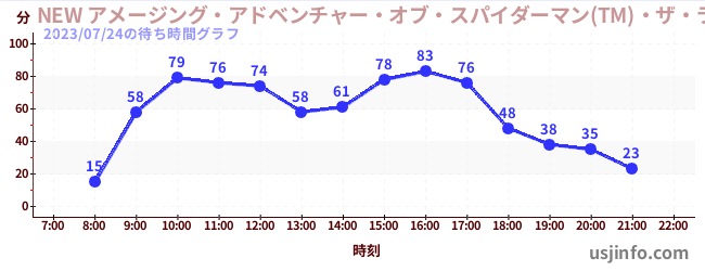 • NEW アメージング・アドベンチャー・オブ・スパイダーマン(TM)・ザ・ライド 4K3D$B$N(B2023年07月24日の待ち時間