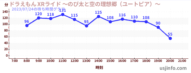 • ドラえもん XRライド ~のび太と空の理想郷(ユートピア)~$B$N(B2023年07月24日の待ち時間