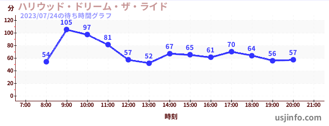 • ハリウッド・ドリーム・ザ・ライド$B$N(B2023年07月24日の待ち時間