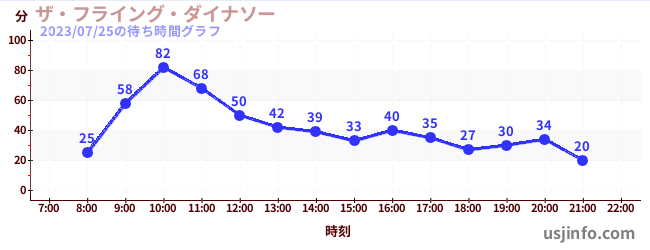 • ザ・フライング・ダイナソー$B$N(B2023年07月25日の待ち時間