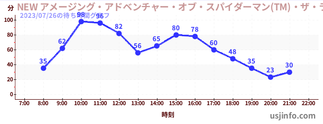 • NEW アメージング・アドベンチャー・オブ・スパイダーマン(TM)・ザ・ライド 4K3D$B$N(B2023年07月26日の待ち時間