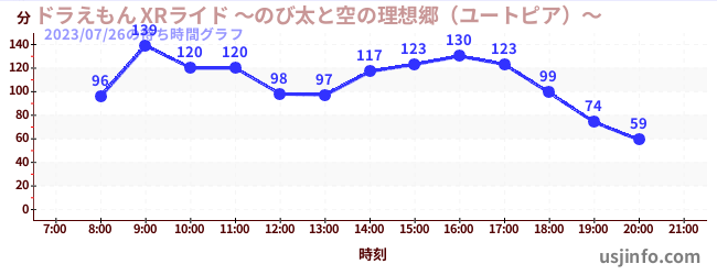 • ドラえもん XRライド ~のび太と空の理想郷(ユートピア)~$B$N(B2023年07月26日の待ち時間