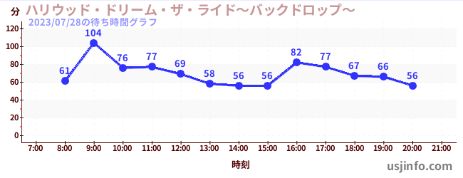 • ハリウッド・ドリーム・ザ・ライド〜バックドロップ〜$B$N(B2023年07月28日の待ち時間