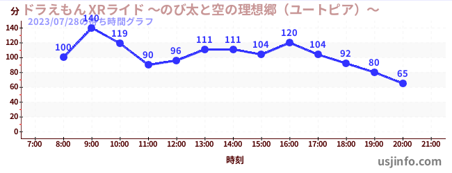 • ドラえもん XRライド ~のび太と空の理想郷(ユートピア)~$B$N(B2023年07月28日の待ち時間