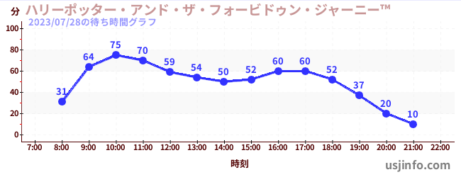 • ハリーポッター・アンド・ザ・フォービドゥン・ジャーニー™$B$N(B2023年07月28日の待ち時間