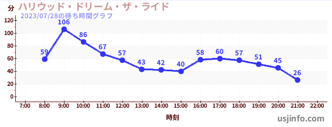 • ハリウッド・ドリーム・ザ・ライド$B$N(B2023年07月28日の待ち時間