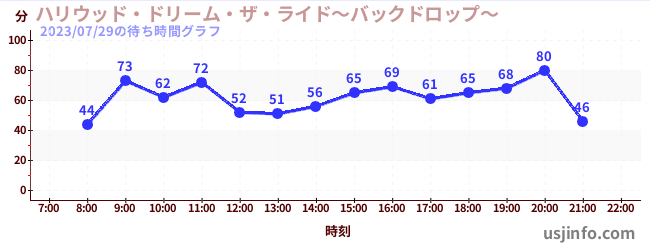 • ハリウッド・ドリーム・ザ・ライド〜バックドロップ〜$B$N(B2023年07月29日の待ち時間