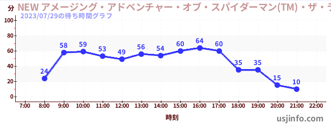 • NEW アメージング・アドベンチャー・オブ・スパイダーマン(TM)・ザ・ライド 4K3D$B$N(B2023年07月29日の待ち時間