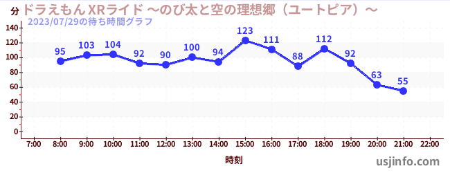 • ドラえもん XRライド ~のび太と空の理想郷(ユートピア)~$B$N(B2023年07月29日の待ち時間