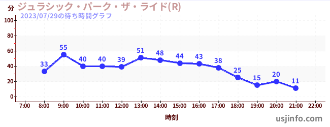 • ジュラシック・パーク・ザ・ライド(R)$B$N(B2023年07月29日の待ち時間