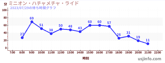 • ミニオン・ハチャメチャ・ライド$B$N(B2023年07月29日の待ち時間