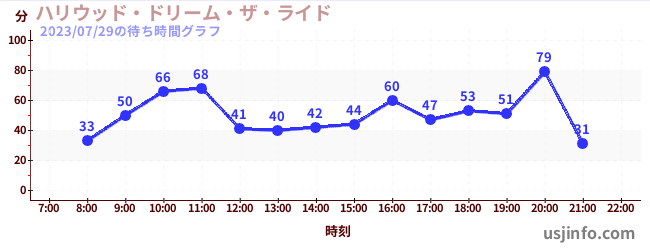 • ハリウッド・ドリーム・ザ・ライド$B$N(B2023年07月29日の待ち時間