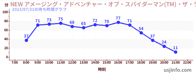 • NEW アメージング・アドベンチャー・オブ・スパイダーマン(TM)・ザ・ライド 4K3D$B$N(B2023年07月31日の待ち時間