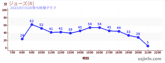 • ジョーズ(R)$B$N(B2023年07月31日の待ち時間