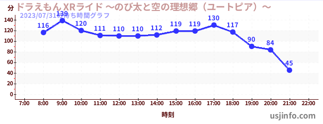 • ドラえもん XRライド ~のび太と空の理想郷(ユートピア)~$B$N(B2023年07月31日の待ち時間