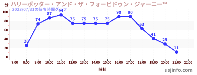 • ハリーポッター・アンド・ザ・フォービドゥン・ジャーニー™$B$N(B2023年07月31日の待ち時間