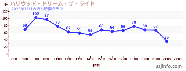 • ハリウッド・ドリーム・ザ・ライド$B$N(B2023年07月31日の待ち時間