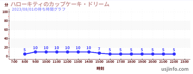 • ハローキティのカップケーキ・ドリーム$B$N(B2023年08月01日の待ち時間