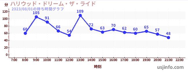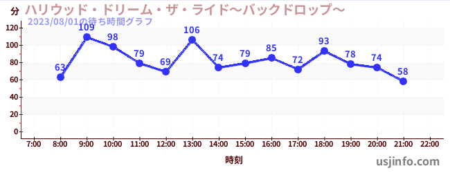 • ハリウッド・ドリーム・ザ・ライド〜バックドロップ〜$B$N(B2023年08月01日の待ち時間