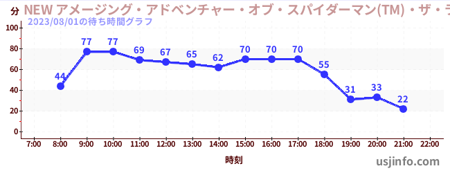 • NEW アメージング・アドベンチャー・オブ・スパイダーマン(TM)・ザ・ライド 4K3D$B$N(B2023年08月01日の待ち時間