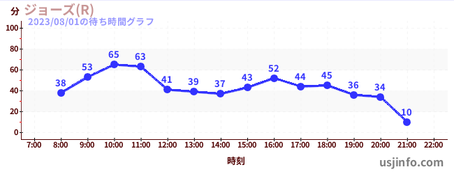 • ジョーズ(R)$B$N(B2023年08月01日の待ち時間