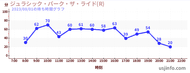 • ジュラシック・パーク・ザ・ライド(R)$B$N(B2023年08月01日の待ち時間