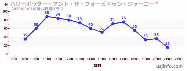 • ハリーポッター・アンド・ザ・フォービドゥン・ジャーニー™$B$N(B2023年08月01日の待ち時間