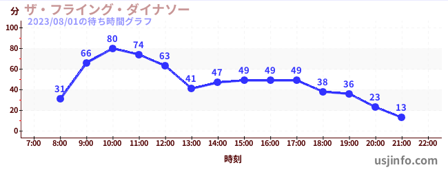 • ザ・フライング・ダイナソー$B$N(B2023年08月01日の待ち時間