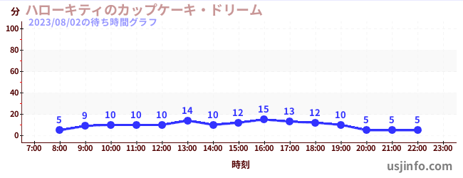 • ハローキティのカップケーキ・ドリーム$B$N(B2023年08月02日の待ち時間