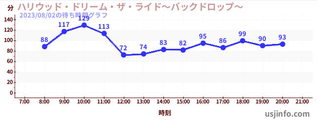 • ハリウッド・ドリーム・ザ・ライド〜バックドロップ〜$B$N(B2023年08月02日の待ち時間