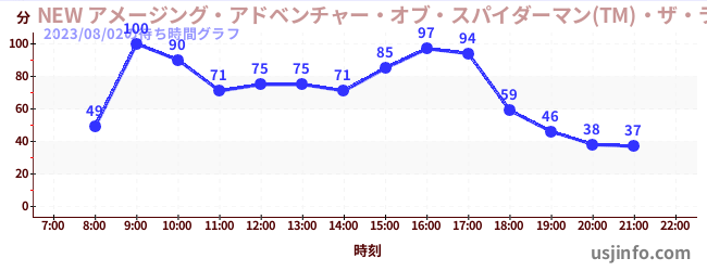 • NEW アメージング・アドベンチャー・オブ・スパイダーマン(TM)・ザ・ライド 4K3D$B$N(B2023年08月02日の待ち時間