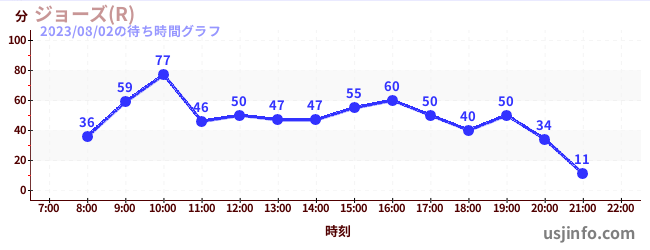 • ジョーズ(R)$B$N(B2023年08月02日の待ち時間