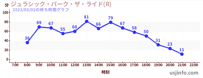• ジュラシック・パーク・ザ・ライド(R)$B$N(B2023年08月02日の待ち時間