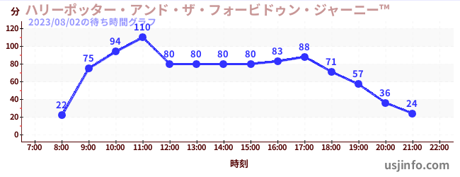 • ハリーポッター・アンド・ザ・フォービドゥン・ジャーニー™$B$N(B2023年08月02日の待ち時間