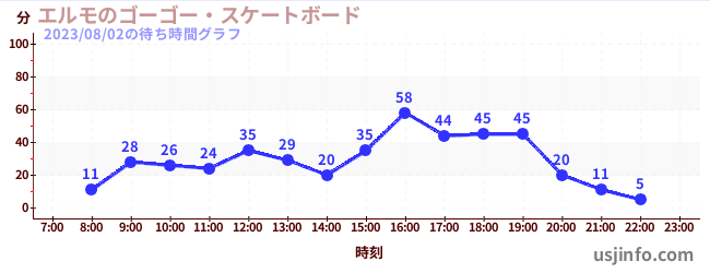 • エルモのゴーゴー・スケートボード$B$N(B2023年08月02日の待ち時間