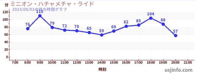 • ミニオン・ハチャメチャ・ライド$B$N(B2023年08月02日の待ち時間