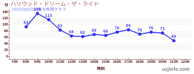 • ハリウッド・ドリーム・ザ・ライド$B$N(B2023年08月02日の待ち時間