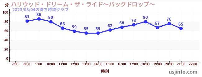• ハリウッド・ドリーム・ザ・ライド〜バックドロップ〜$B$N(B2023年08月04日の待ち時間