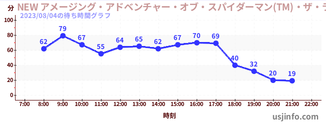 • NEW アメージング・アドベンチャー・オブ・スパイダーマン(TM)・ザ・ライド 4K3D$B$N(B2023年08月04日の待ち時間