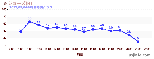 • ジョーズ(R)$B$N(B2023年08月04日の待ち時間
