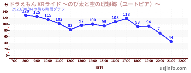 • ドラえもん XRライド ~のび太と空の理想郷(ユートピア)~$B$N(B2023年08月04日の待ち時間