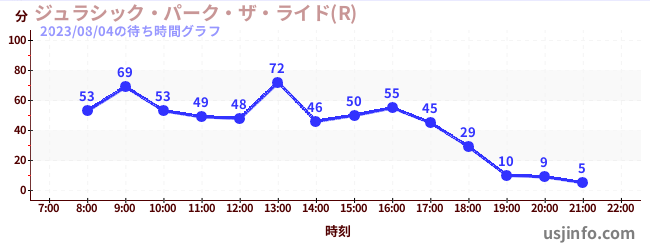 • ジュラシック・パーク・ザ・ライド(R)$B$N(B2023年08月04日の待ち時間