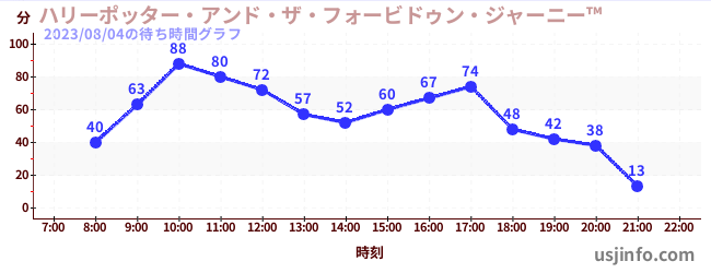 • ハリーポッター・アンド・ザ・フォービドゥン・ジャーニー™$B$N(B2023年08月04日の待ち時間