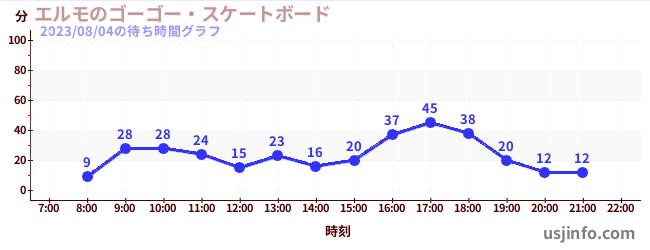 • エルモのゴーゴー・スケートボード$B$N(B2023年08月04日の待ち時間