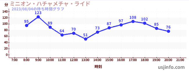 • ミニオン・ハチャメチャ・ライド$B$N(B2023年08月04日の待ち時間