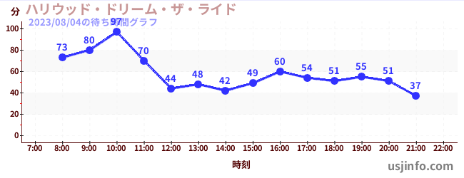 • ハリウッド・ドリーム・ザ・ライド$B$N(B2023年08月04日の待ち時間
