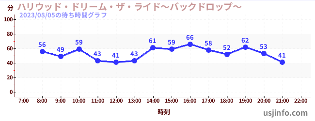 • ハリウッド・ドリーム・ザ・ライド〜バックドロップ〜$B$N(B2023年08月05日の待ち時間